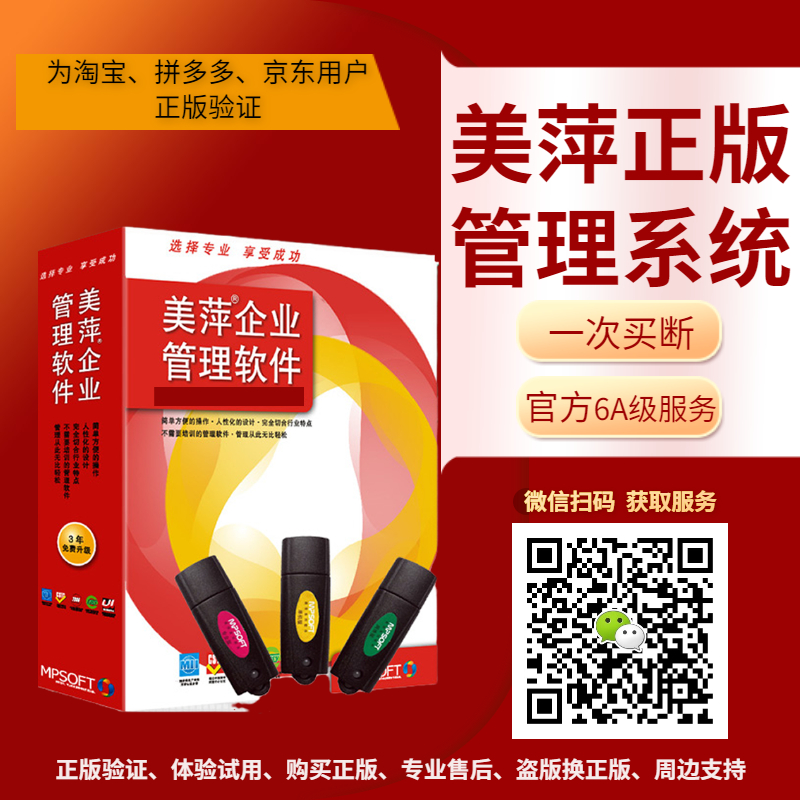 认准美萍软件正品正版,防止被淘宝、拼多多、线下卖盗版美萍软件的商家欺骗