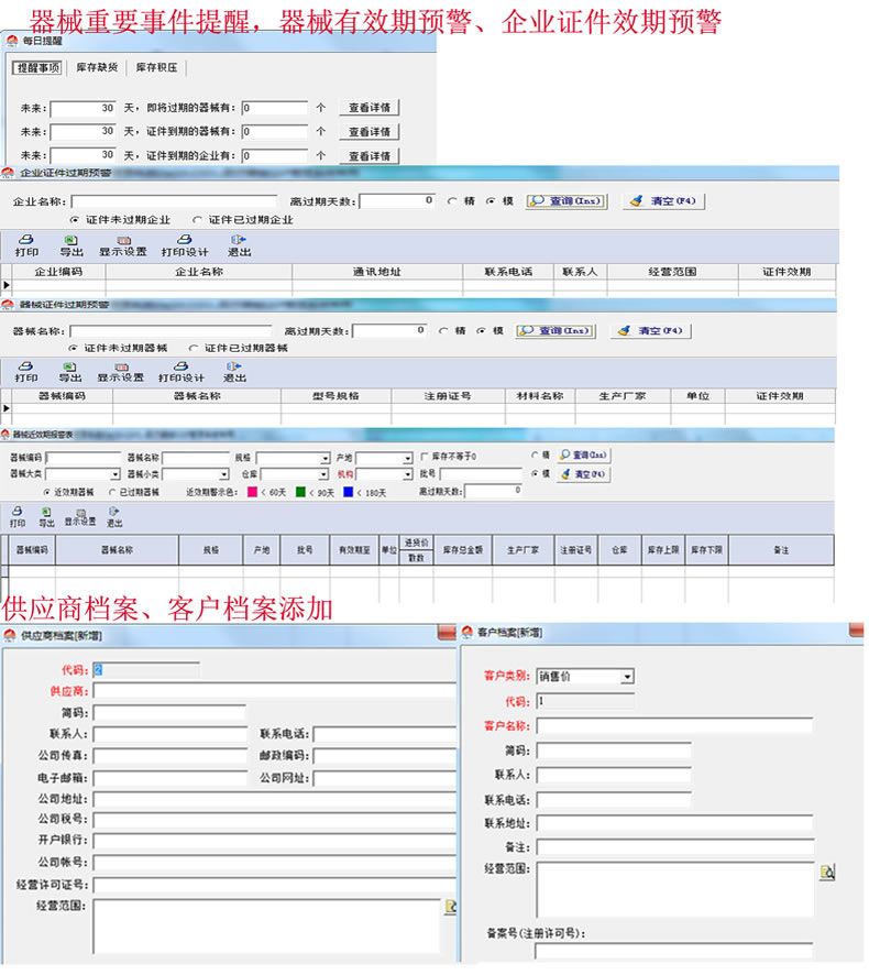 具有对库存医疗器械的有效期进行自动跟踪和控制功能,有近效期预警及超过有效期自动锁定等功能,防止过期医疗器械销售。
