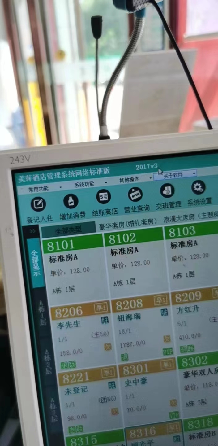 美萍酒店客房前台收银管理系统出现如图示状况,是因为电脑时间不对了